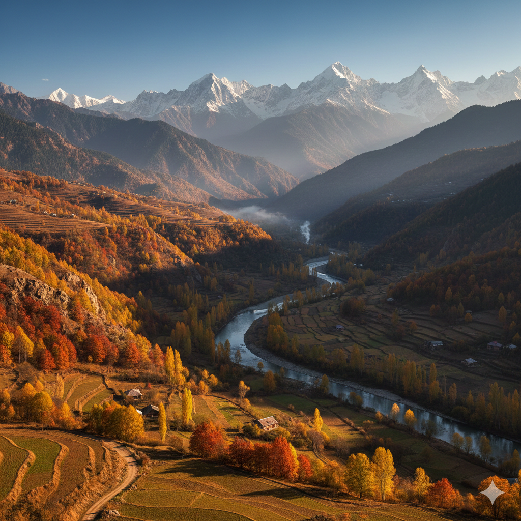 During spring and summer, the valley is painted in rich shades of greens. Wildflowers spread all over open fields, while orchards come alive with fresh leaves and blossoms. During autumn, the valley is reddened as apple orchards ready themselves for harvest. During winter, though it's challenging to travel, the valley is encapsulated by snow so pristine, this makes for a magical but isolated atmosphere.
